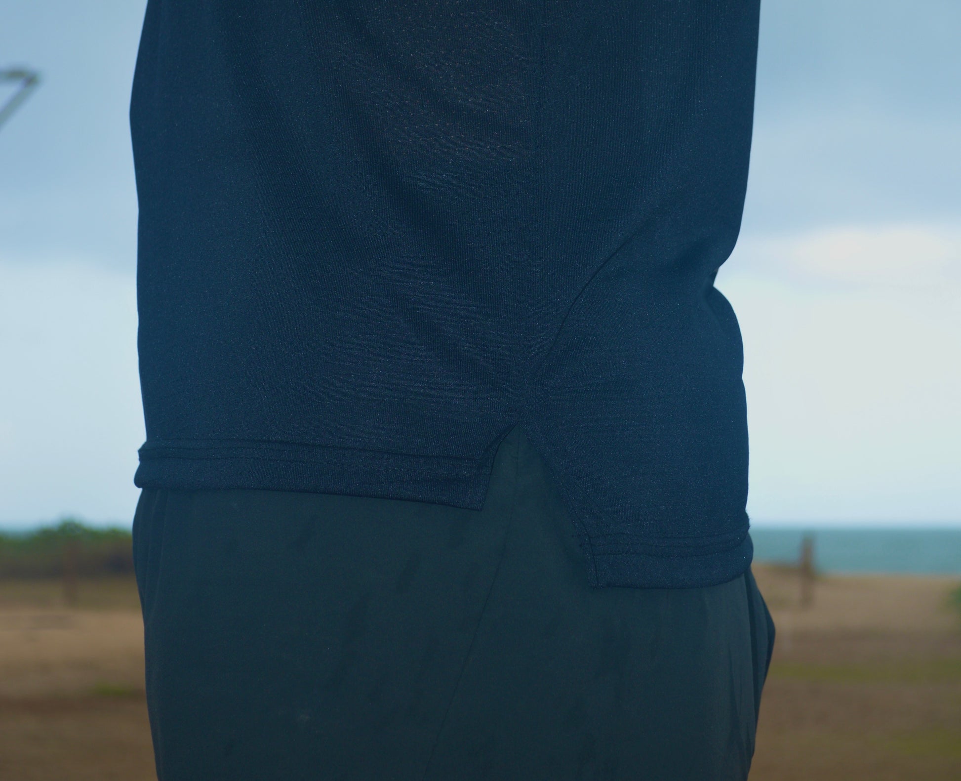 O tecido furadinho potencializa a ventilação, mantém o corpo seco e garante conforto total em treinos e provas.